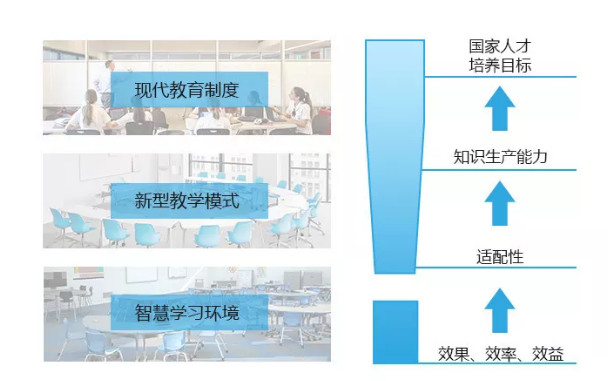 智慧教育系統(tǒng)由智慧學習環(huán)境、新型教學模式和現(xiàn)代教育制度三個層面構成,從效果、效率和效益三個方面不斷提升知識生產(chǎn)能力,以最終實現(xiàn)培養(yǎng)卓越的國家人才的教育目標,這就是智慧教育的三個境界。
