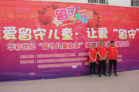 2018年5月31日,在第69屆兒童節(jié)來臨之際,深圳市名尊愛心促進會會長、愛心企業(yè)家嚴(yán)雨麗女士、深圳市華圳影視傳媒有限公司董事長、資深媒體人張祖國先生、佛山市祥聚座椅制造有限公司研發(fā)設(shè)計總工程師段道朝先生和深圳市名尊愛心促進會秘書長沈海國先生等一行60多人到河源市龍川縣豐稔鎮(zhèn)豐聯(lián)小學(xué)參加“華彩世紀(jì)留守兒童之家”揭牌暨慈善捐贈活動,為豐聯(lián)小學(xué)全體師生送上節(jié)日的祝福和問候。