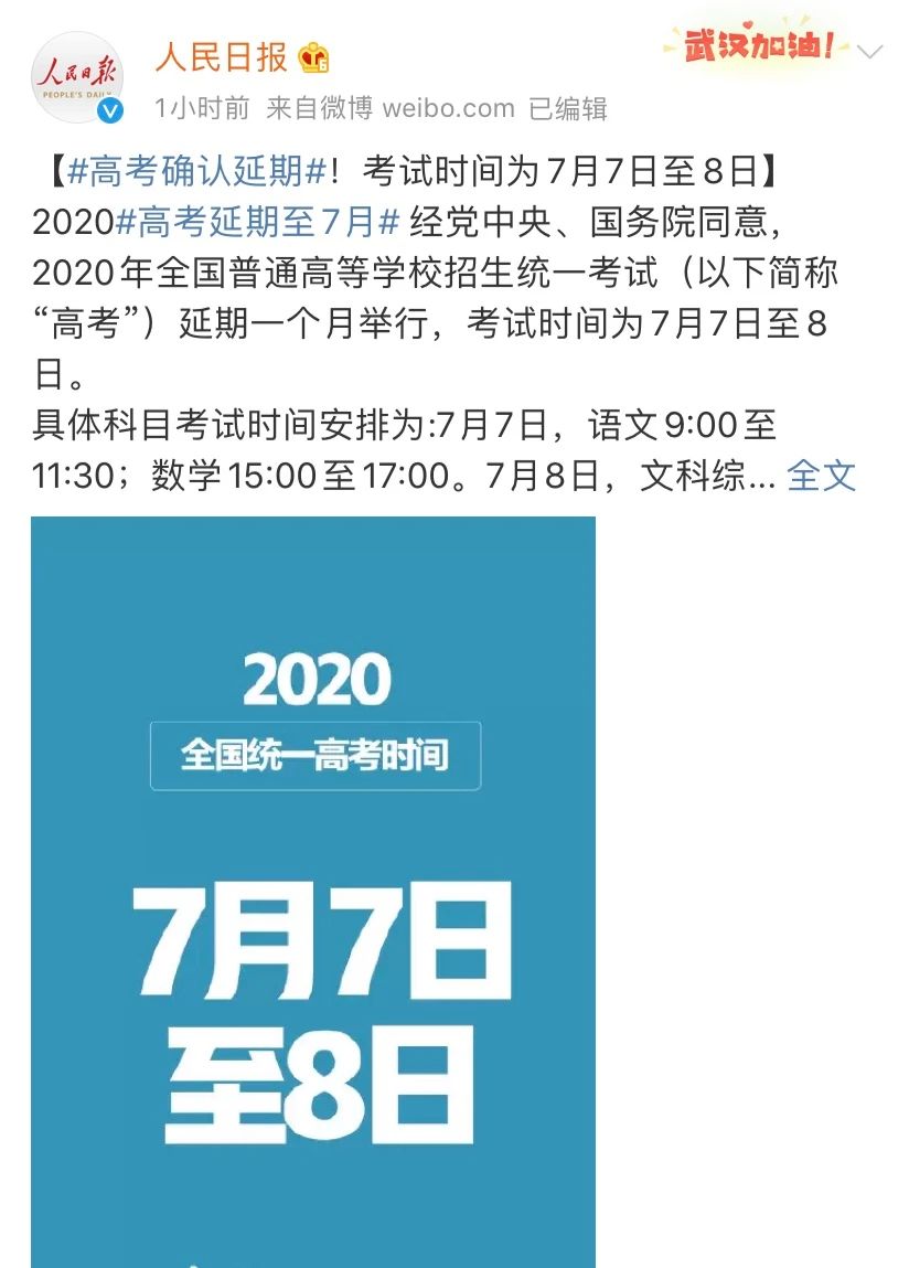 重磅!2020年全國(guó)高考時(shí)間確定延期一個(gè)月!