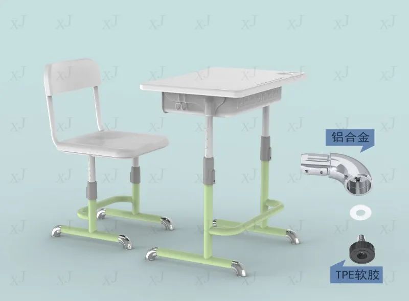 課桌椅選用鋁合金和TPE軟膠材料護(hù)腳,防沖撞、耐磨損,穩(wěn)定防滑,防止地面過度摩擦,用心呵護(hù)學(xué)生的健康安全,守護(hù)學(xué)生的教學(xué)環(huán)境。