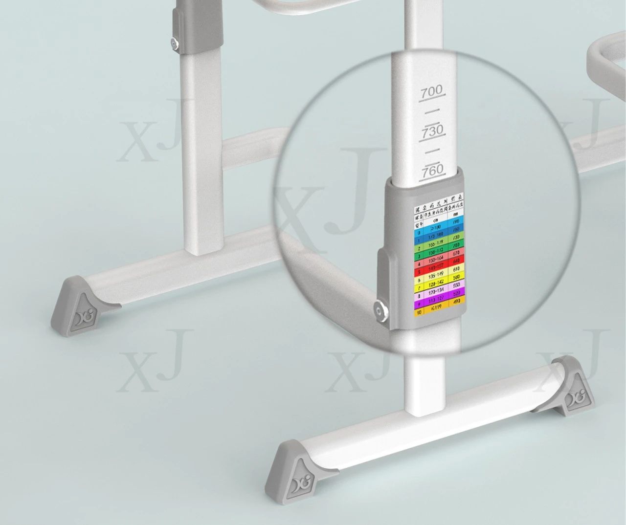 海王星005課桌共有多個(gè)檔位精密調(diào)節(jié)升降,1.8mm壁厚圓形管,升降推拉順滑穩(wěn)定,適應(yīng)各年齡段學(xué)生需求。倒T型桌腿設(shè)計(jì),更安全,穩(wěn)固耐用。