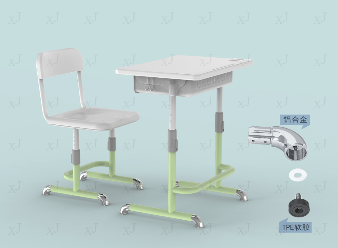 桌子和椅子分別有4個(gè)鋁合金和TPE軟膠材料護(hù)腳,防沖撞、耐磨損,穩(wěn)定耐用,保證學(xué)生的學(xué)習(xí)環(huán)境的安全性。