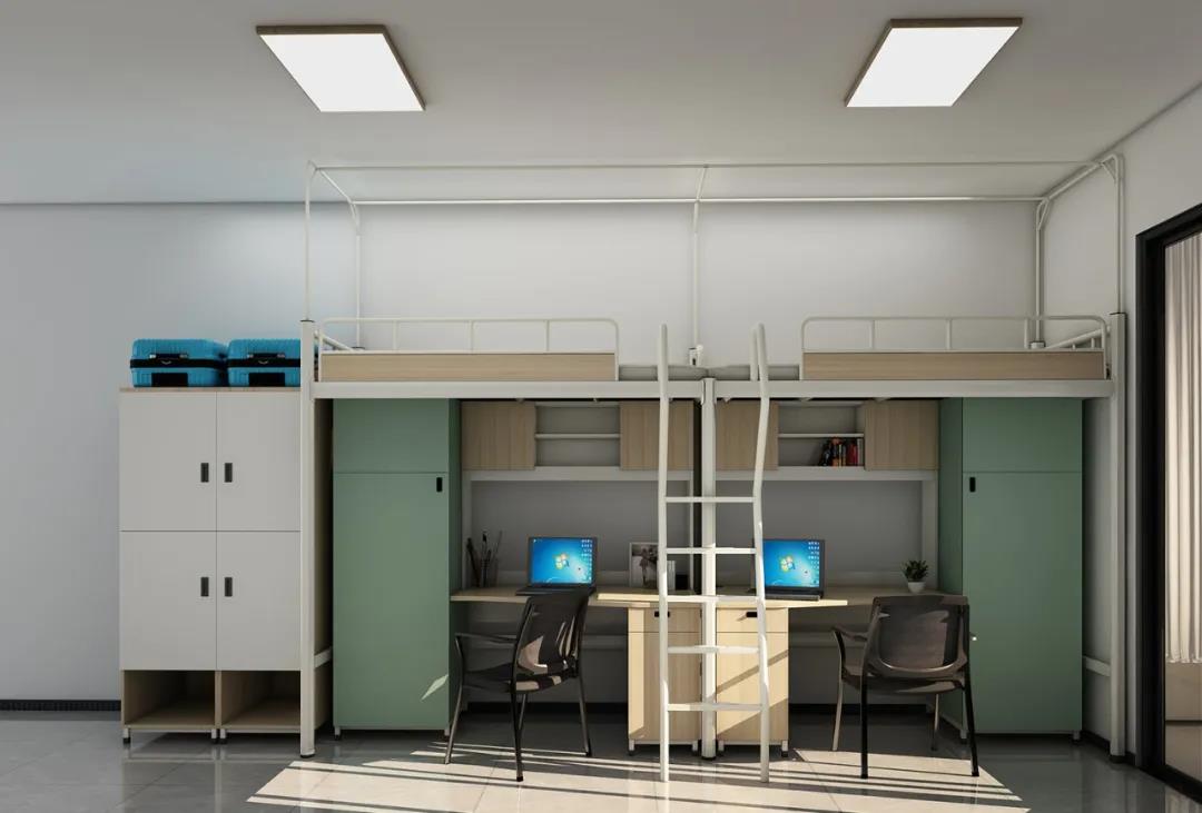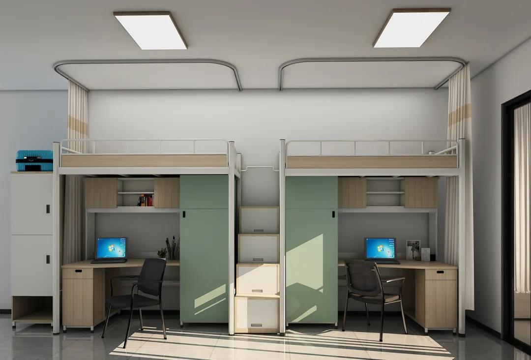 將房間的空間最大化利用,在有限空間中,滿足學(xué)生的學(xué)習(xí)、休息、日常物品收納需求,并將通道做到最大化,完美解決了因空間有限產(chǎn)生的各類問題。