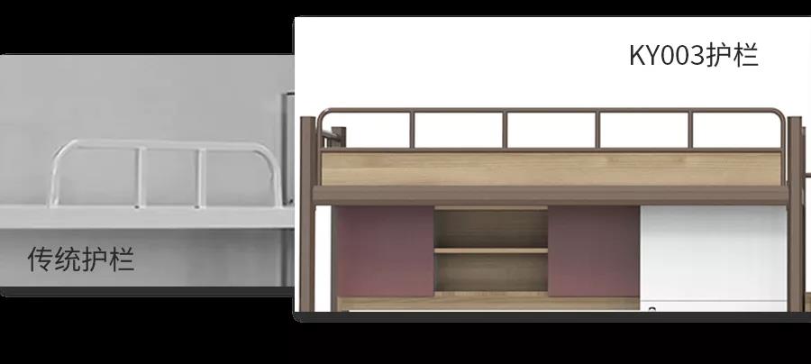 傳統(tǒng)公寓床的護(hù)欄比較低矮,而導(dǎo)致上鋪學(xué)生墜床跌倒,護(hù)欄的高度對學(xué)生的安全至關(guān)重要。一般的公寓床護(hù)欄高度為20cm左右,而有的床上墊的厚度就有3-4cm左右,實(shí)際的護(hù)欄高度僅有16cm。