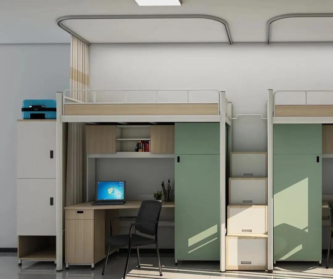 衣柜、書桌、床鋪三位一體,每個(gè)人獨(dú)享一個(gè)小空間。考慮到學(xué)生生活學(xué)習(xí)用品的豐富性,XJ-KY003系列在不同的位置分門別類地設(shè)置了儲(chǔ)物空間。合理規(guī)劃的置物空間,不僅方便學(xué)生取用,同時(shí)又能培養(yǎng)他們良好的收納習(xí)慣,保證宿舍生活的整潔有序。