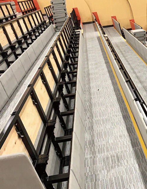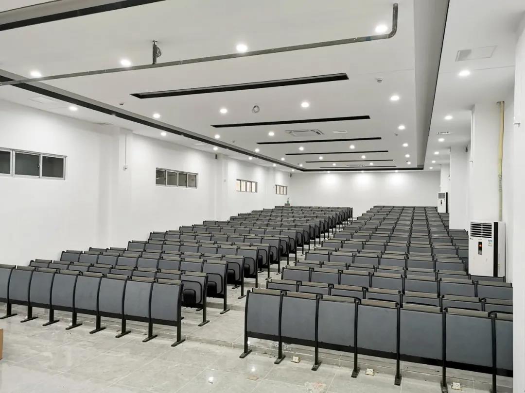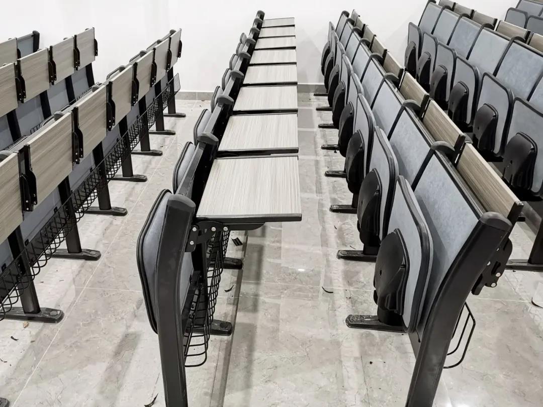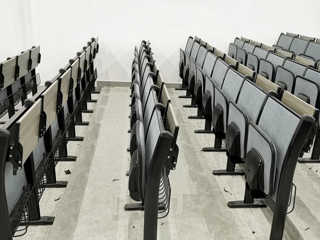 梯教室的聯(lián)排座椅座、背、板為雙面防火板材質(zhì),安全可靠,站腳采用優(yōu)質(zhì)鋁合金一體壓鑄成型,表面靜電粉末噴涂處理,防腐耐磨,承重力強(qiáng)。且桌面板可以收縮,增大過道面積,能夠滿足安全疏散使用需求。
