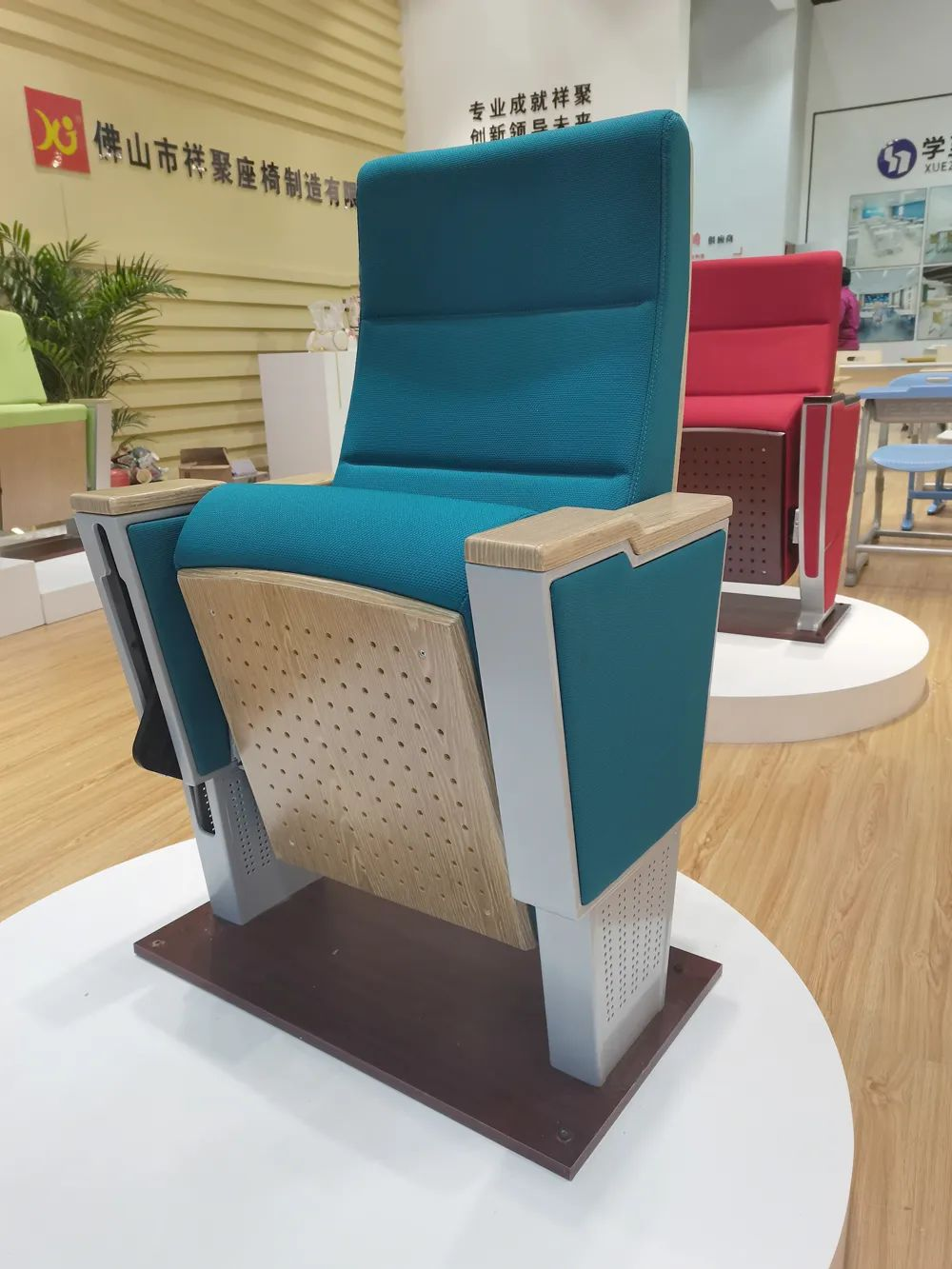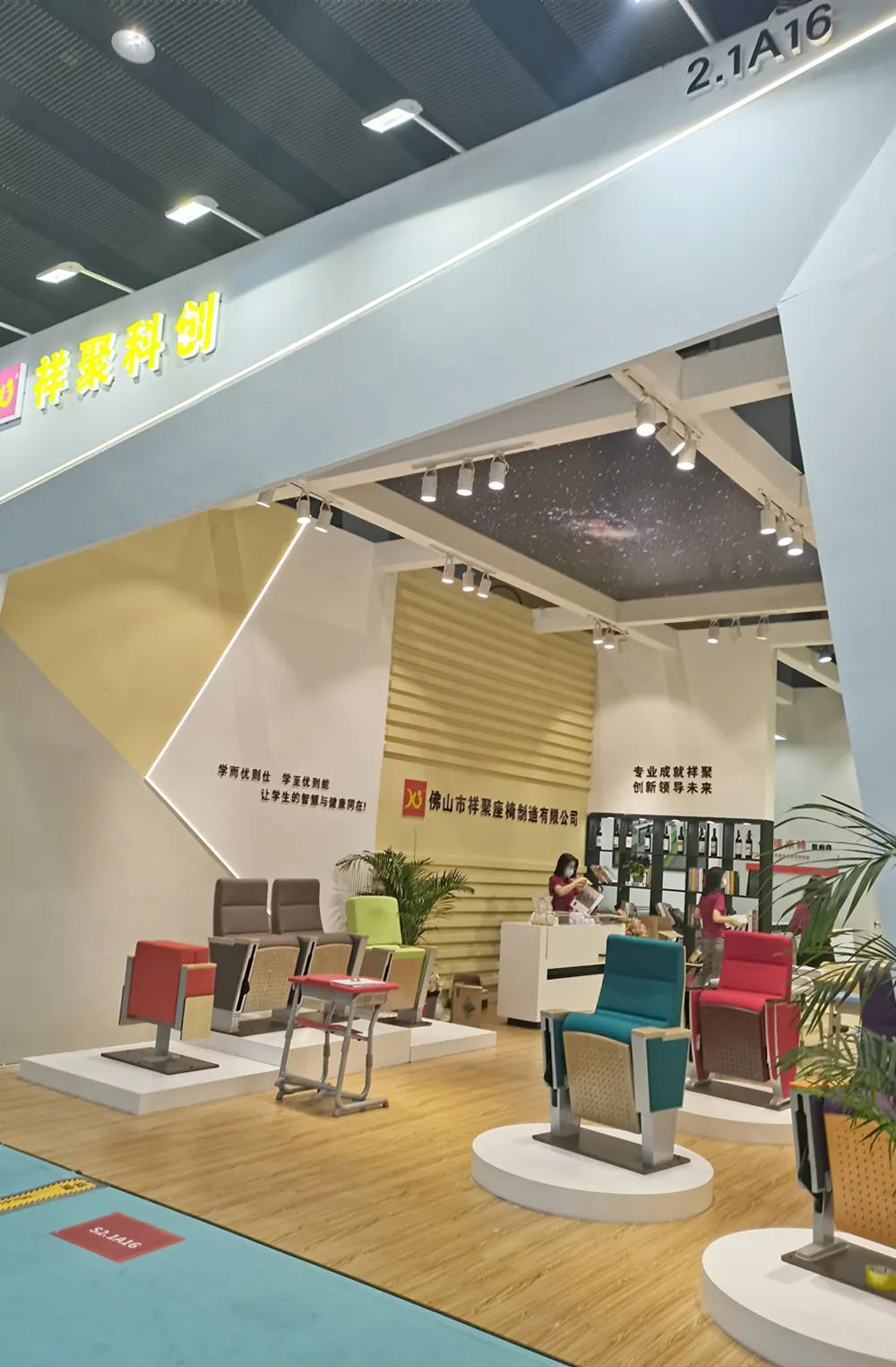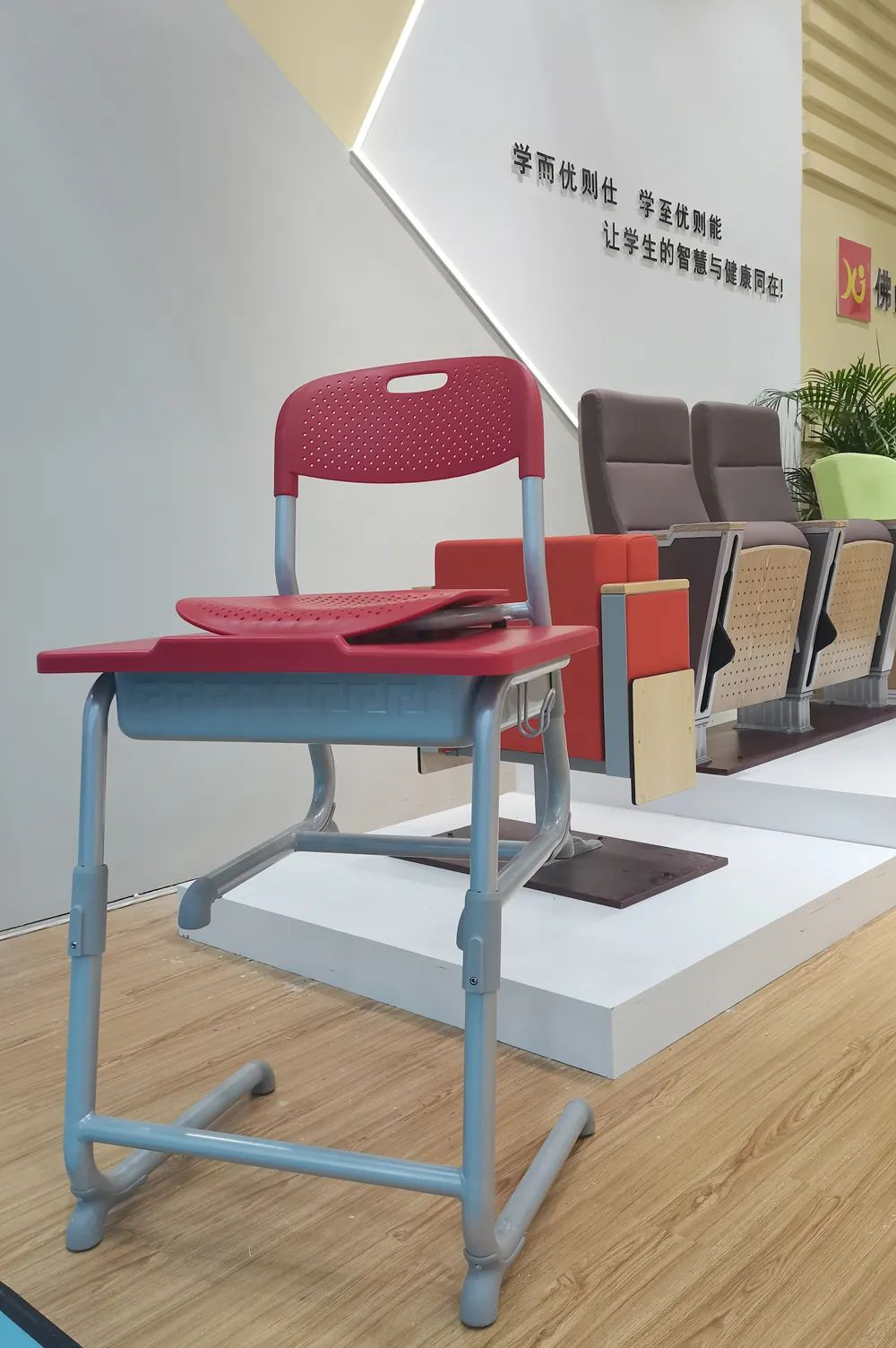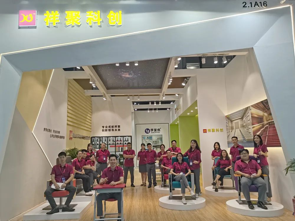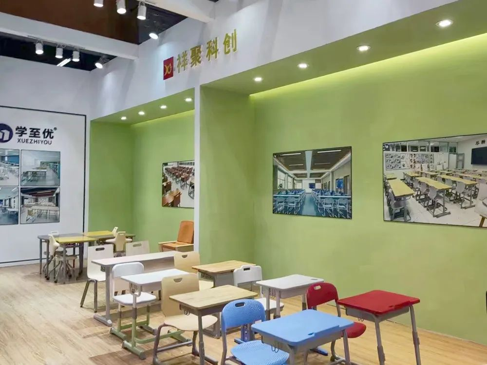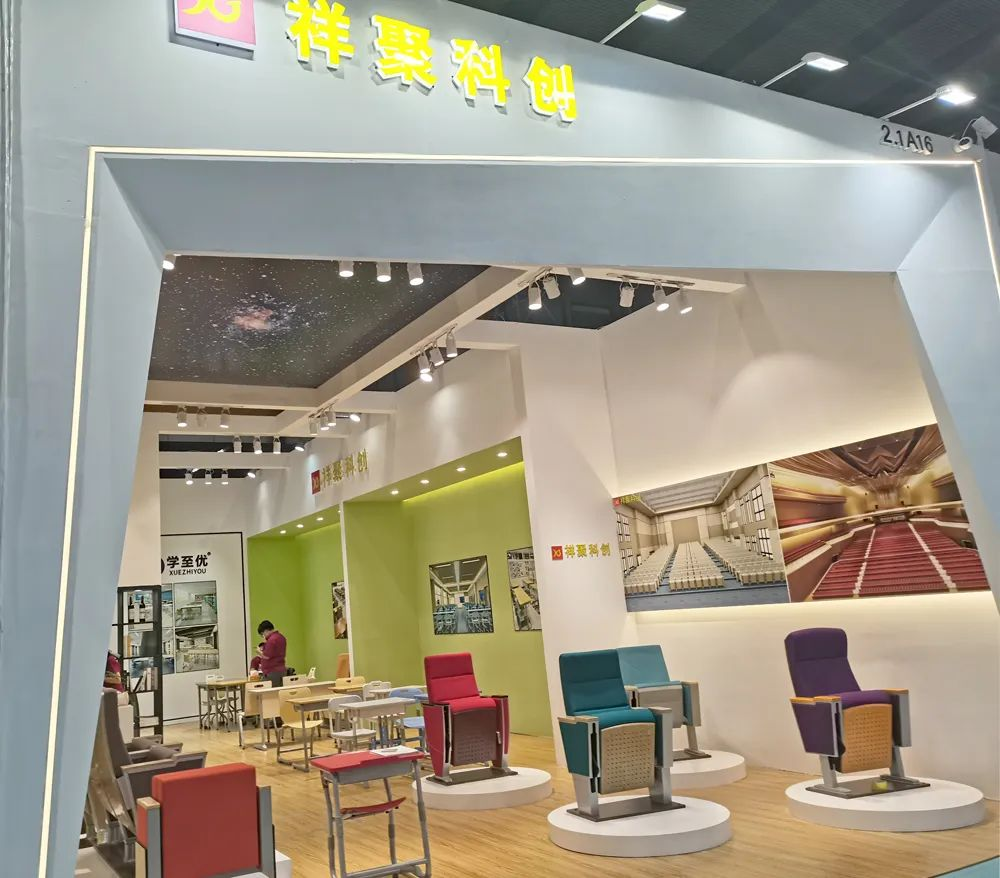 此次展會祥聚帶來了自主研發(fā)的新品,單人課桌椅、階梯課桌椅以及禮堂椅等家具。