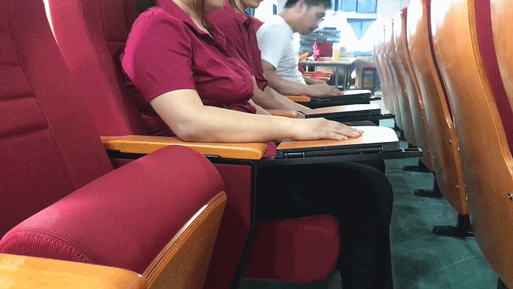 市面上普通的禮堂椅產(chǎn)品,桌板復(fù)位、座板復(fù)位需要手動(dòng)恢復(fù),步驟繁雜,容易導(dǎo)致發(fā)生推擠、踩踏、延誤疏散時(shí)間等,釀成悲劇發(fā)生。