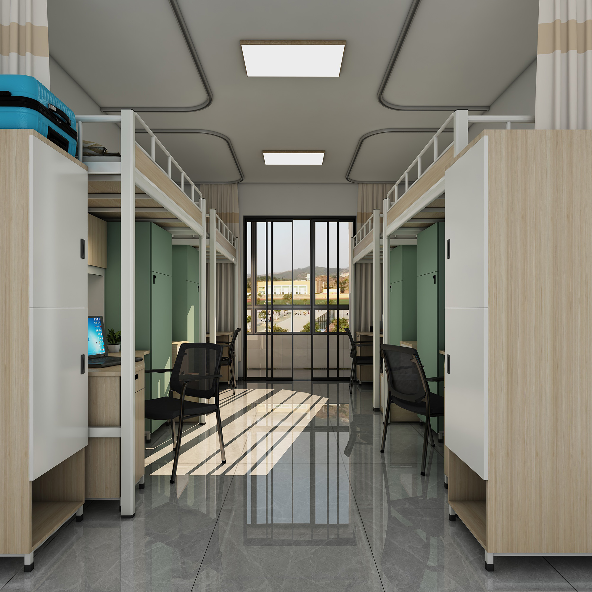 8、床護(hù)欄:采用1.0mm厚優(yōu)質(zhì)管材彎制而成,長度需根據(jù)床的長度調(diào)節(jié)做滿,確保學(xué)生安全,封板采用16mm厚刨花板;