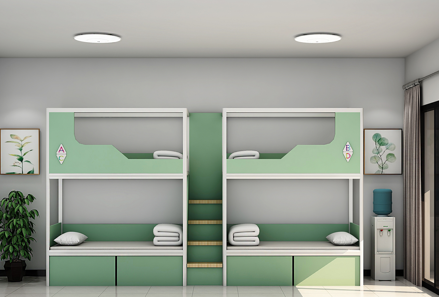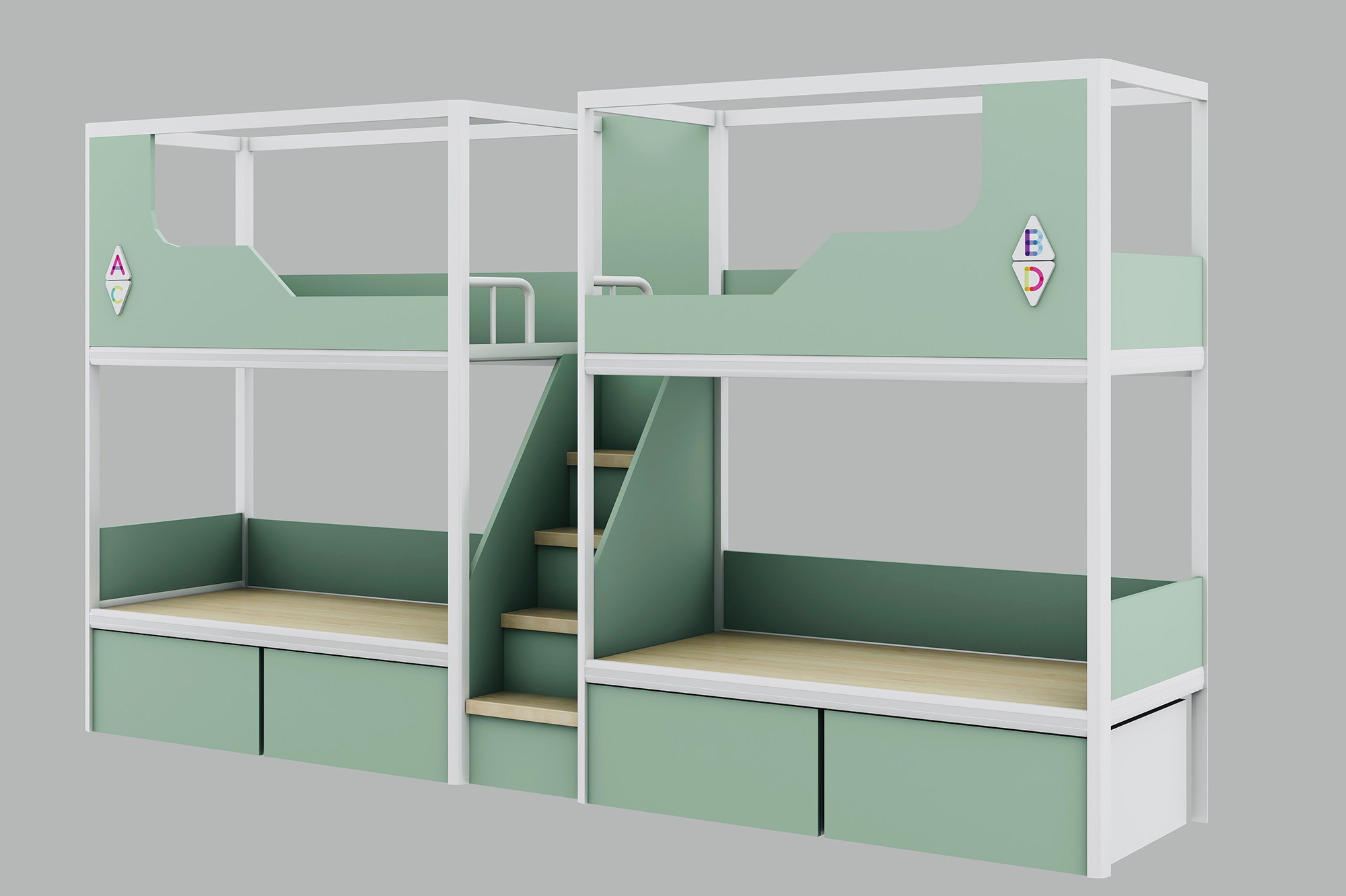 5、床梯采用E1級多層實(shí)木夾板,三聚氰胺板飾面,制作,厚度18mm