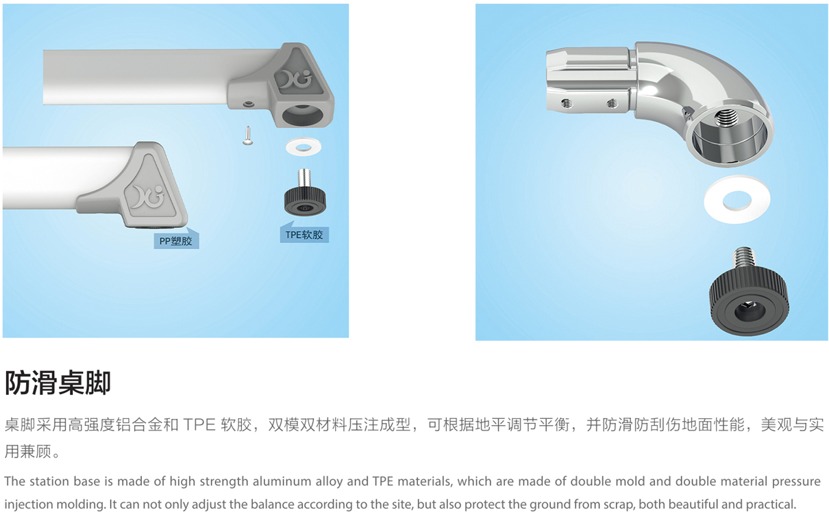 5.桌腳掌:1.8mm壁厚,腳套底有4個平衡調(diào)節(jié)機構。