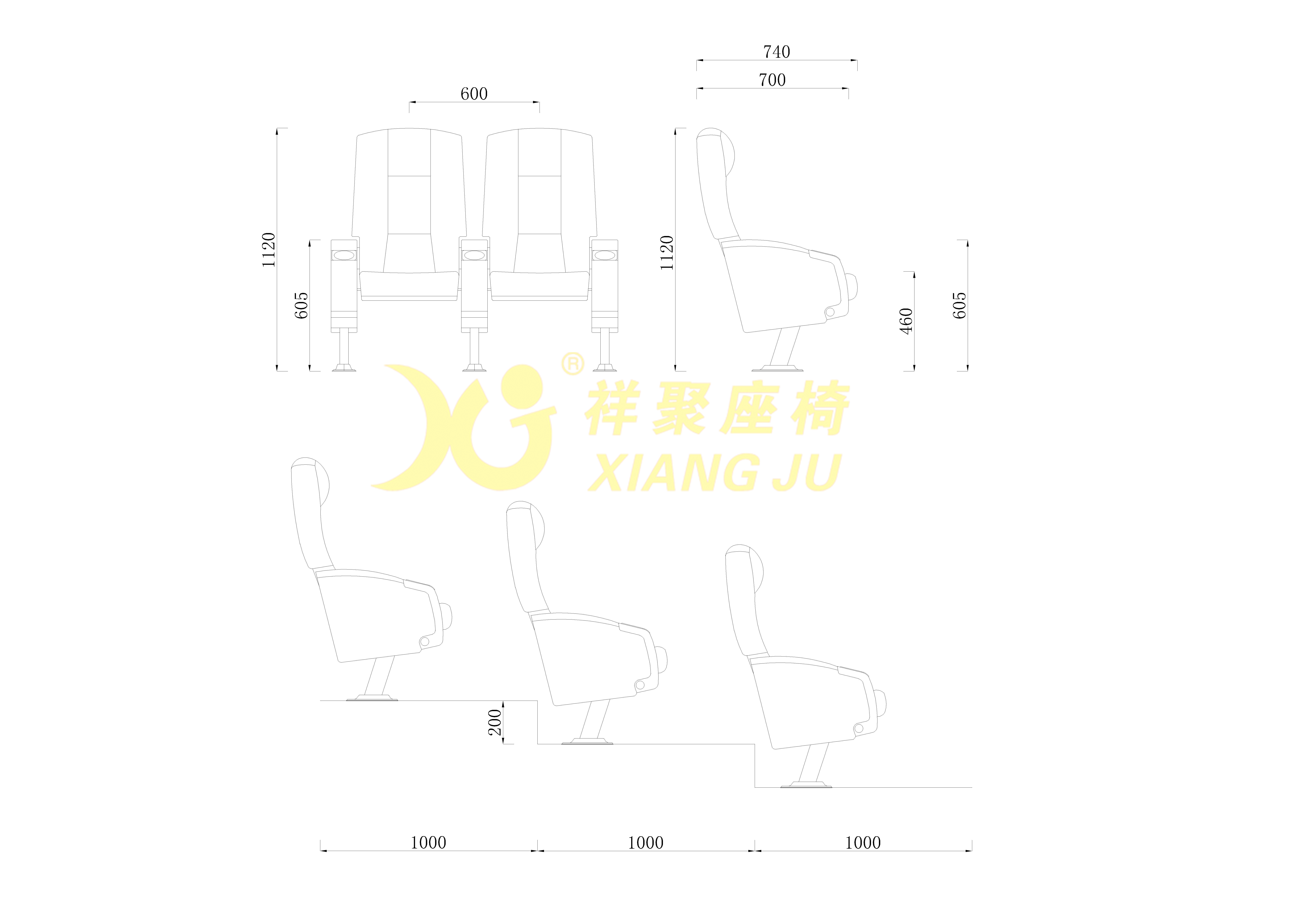 5、扶手:采用優(yōu)質(zhì)ABS復(fù)合材料經(jīng)模具壓鑄成型,活動扶手自帶水杯托。